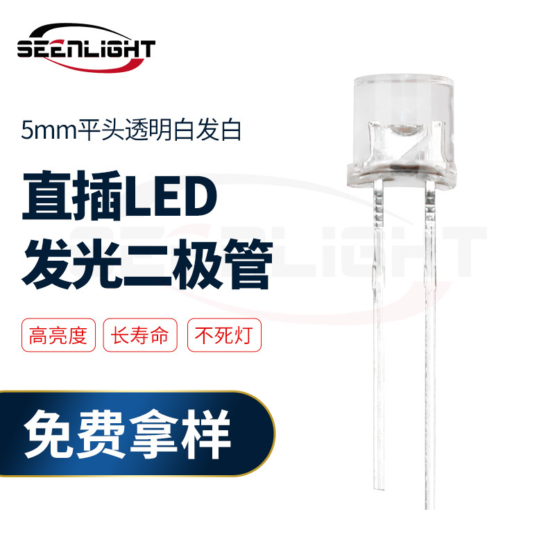 5mm平頭発光ダイオード平頭白髪ストレートled電球f5平頭白色ledランプ