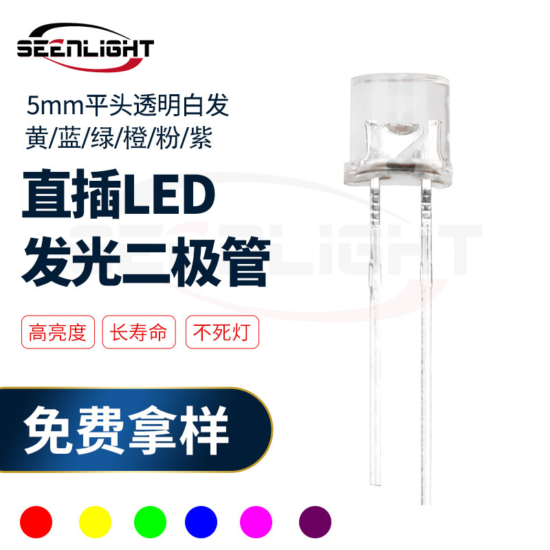 5mm発光ダイオード平頭白髪赤緑青多色直挿しled電球f5平頭ledランプ