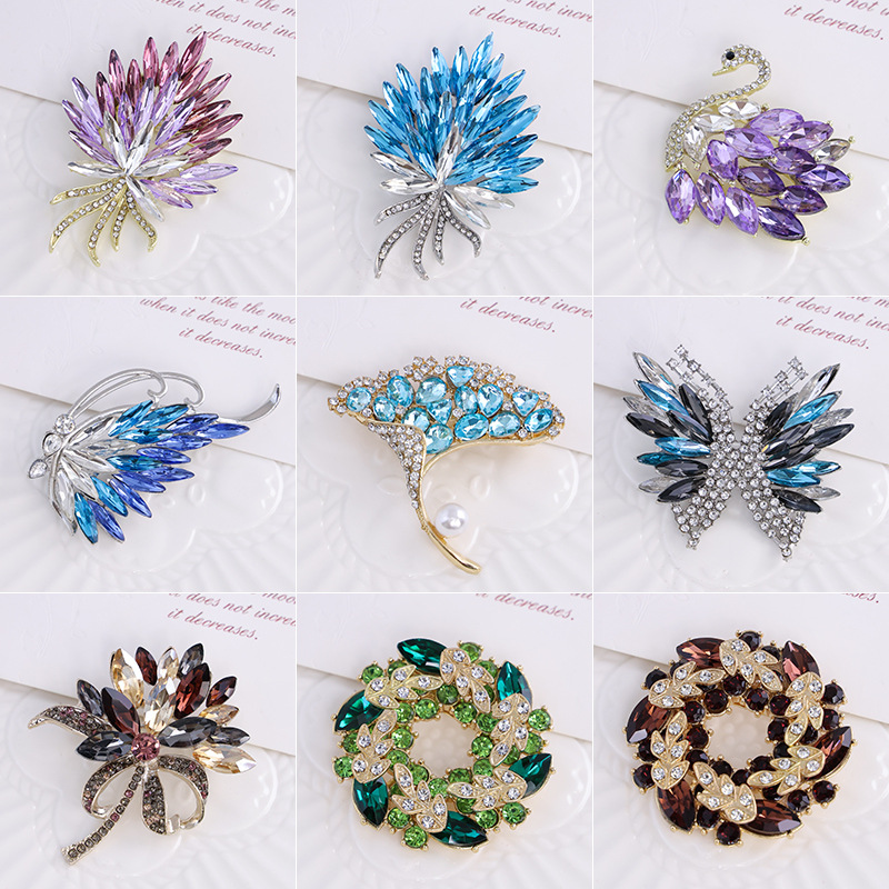 欧米の水晶の麦の穂の蝶のブローチの高級感の小さい大衆の精巧な白鳥の胸の花の軽い贅沢なシルクのティッシュはピンを掛けて飾ります。