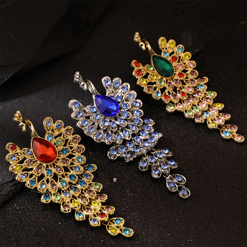 国境を越えた欧米の防走光孔雀の胸の花のピンの高級なブルークのドリルの服装は鳳凰の復古のブローチを飾ります。