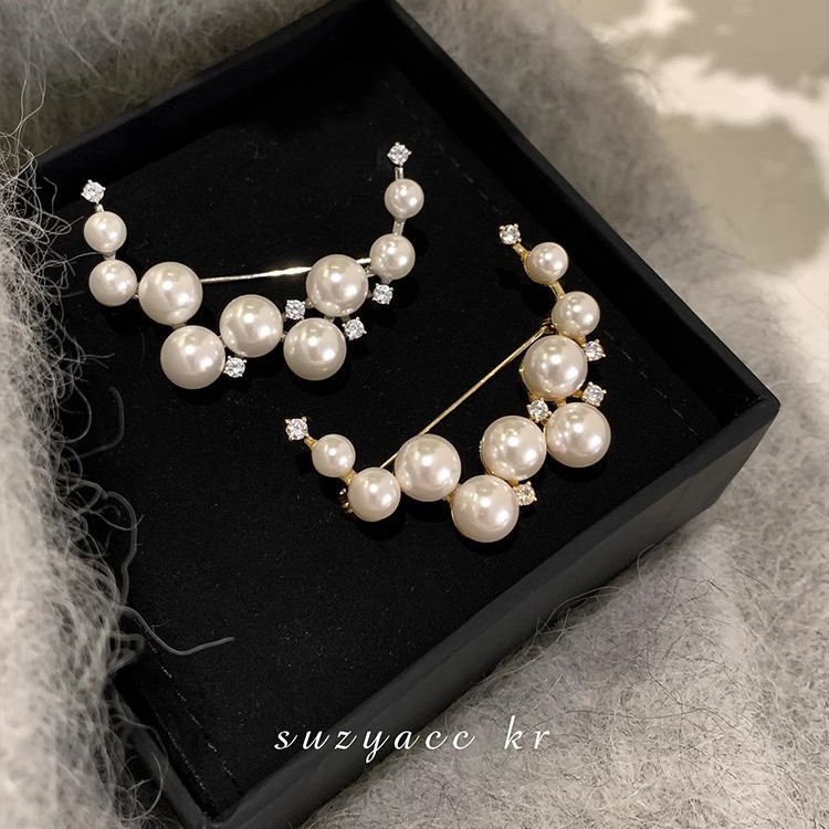 ラインストーンムーンブローチ、高級ニッチプレスブローチ、レトロコサージュ、高級パールレディースアクセサリー