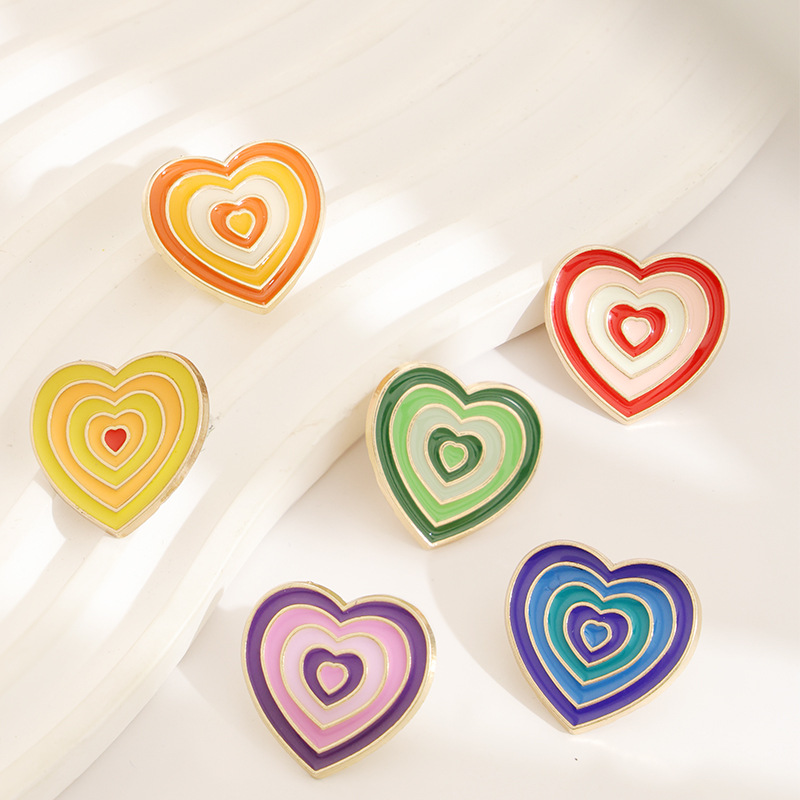 クリエイティブ Y2K グラデーションラブブローチジュエリーアクセサリーシンプルなパーソナライズされた合金オイルドリップマルチカラーピーチハート装飾アクセサリー