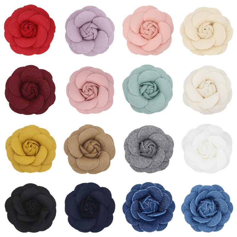 新しい韓国スタイルの小さな香りの生地椿の花ブローチヘッド花ヘアアクセサリーギフトボックス衣類装飾コサージュ 5.5 センチメートル