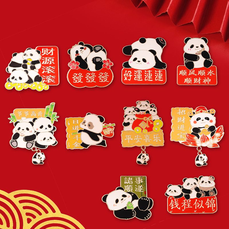 フォーチュンクリエイティブメタルパンダ冷蔵庫マグネット漫画かわいいパンダ文化的で創造的な中国風のタッセル文化旅行のお土産