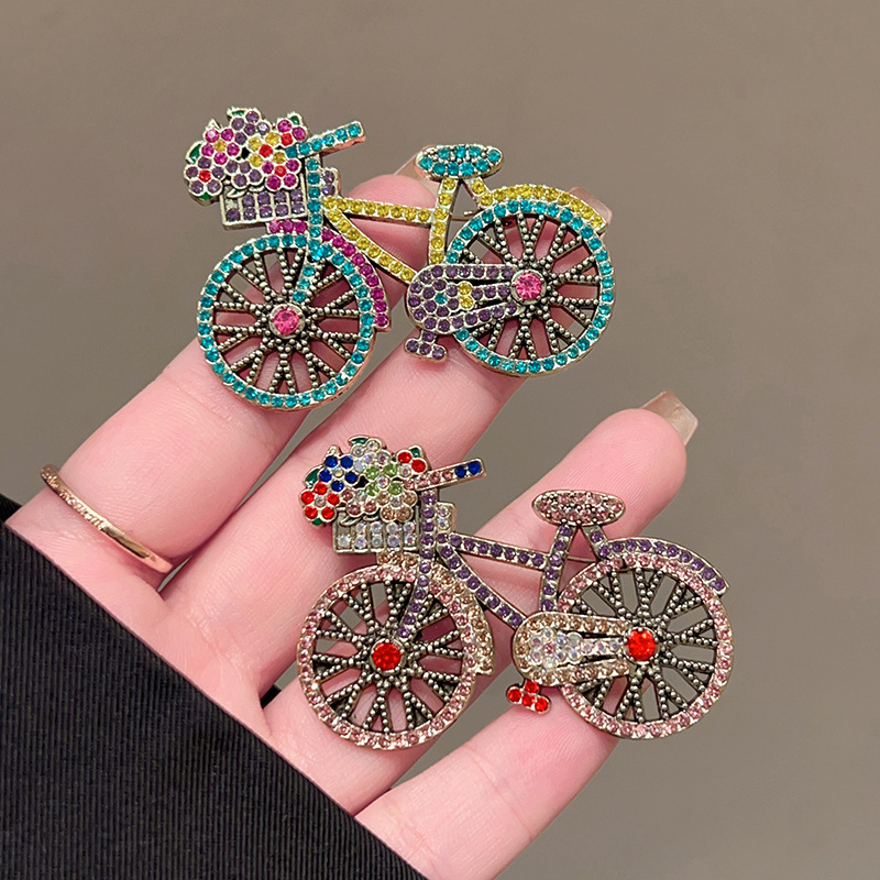 欧米風レトロラインストーン自転車ブローチ個性派ファッション男女兼用合金ピンブローチメーカー卸売
