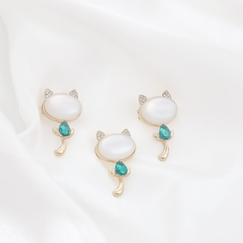日本のかわいい猫目猫ブローチパーソナライズピングリーンラインストーンレトロコサージュピンアクセサリー露出防止ブローチ