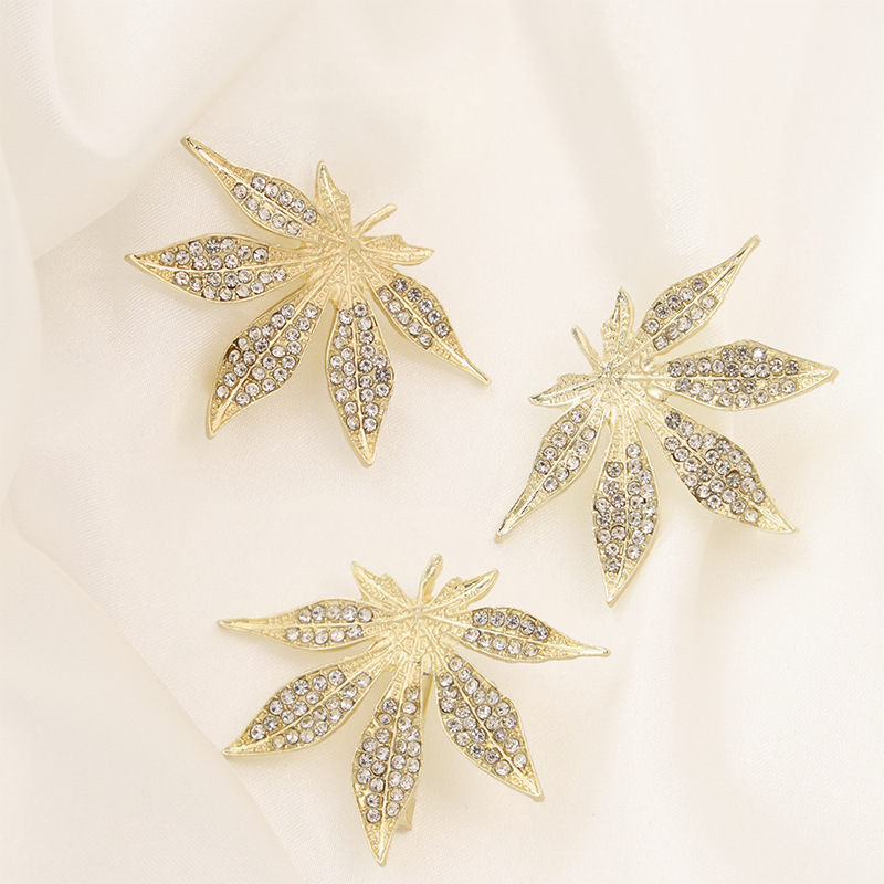 フルダイヤモンドのゴールデン植物メープルリーフブローチ、ニッチな気質、軽い高級コサージュ、シンプルでファッショナブルな雰囲気、装飾ピン付き