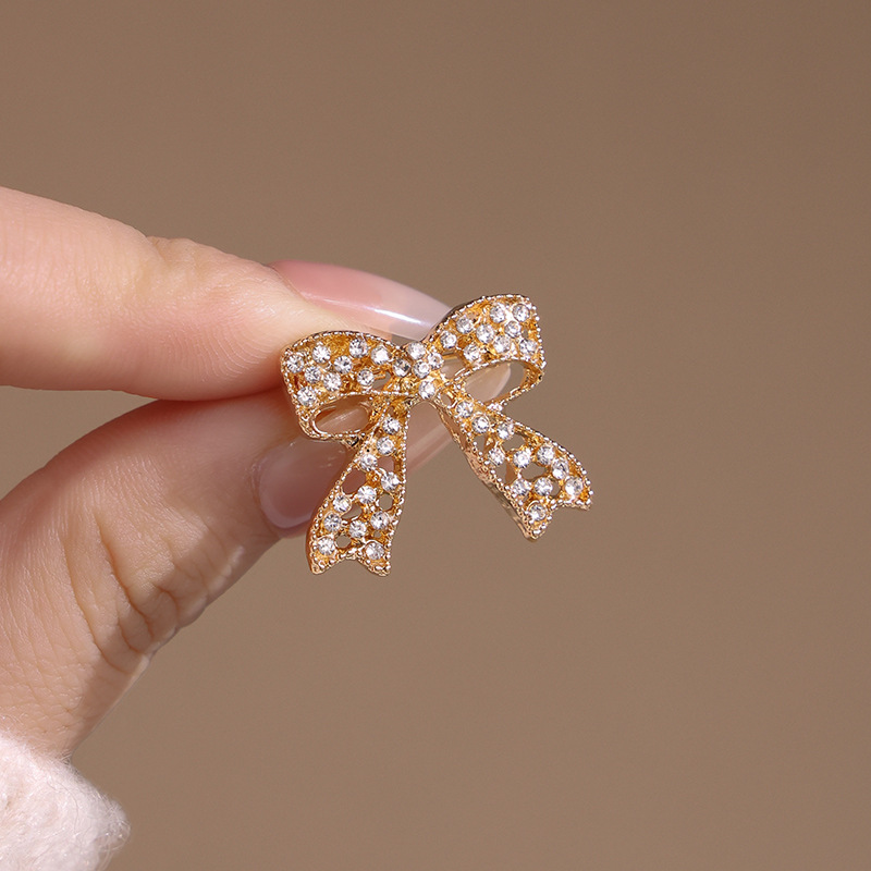 合金のブローチは日本の透かし彫りの蝶結びのブローチです。
