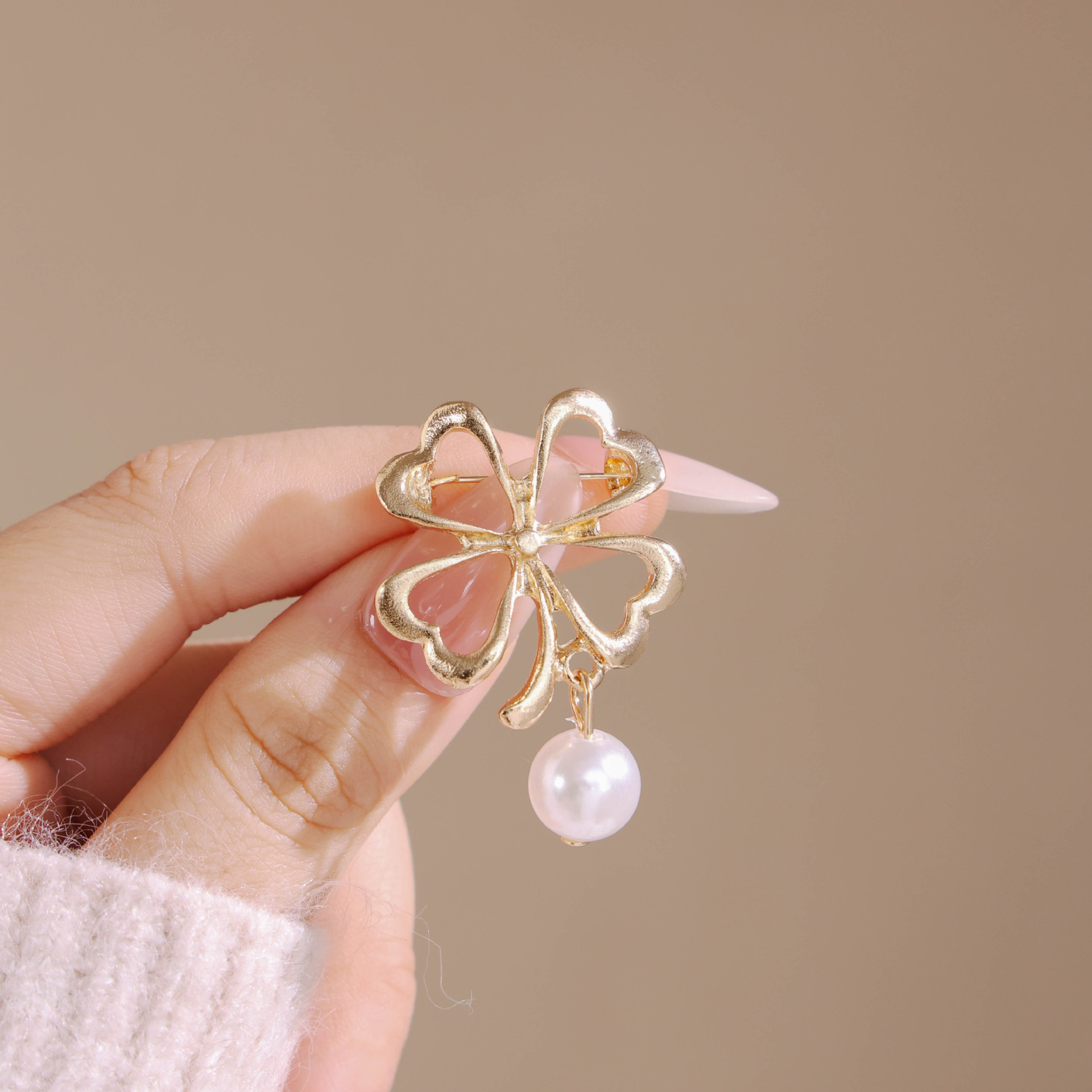 小ブローチ真珠四葉草防光ブローチ高級胸縫いなし防光ボタン