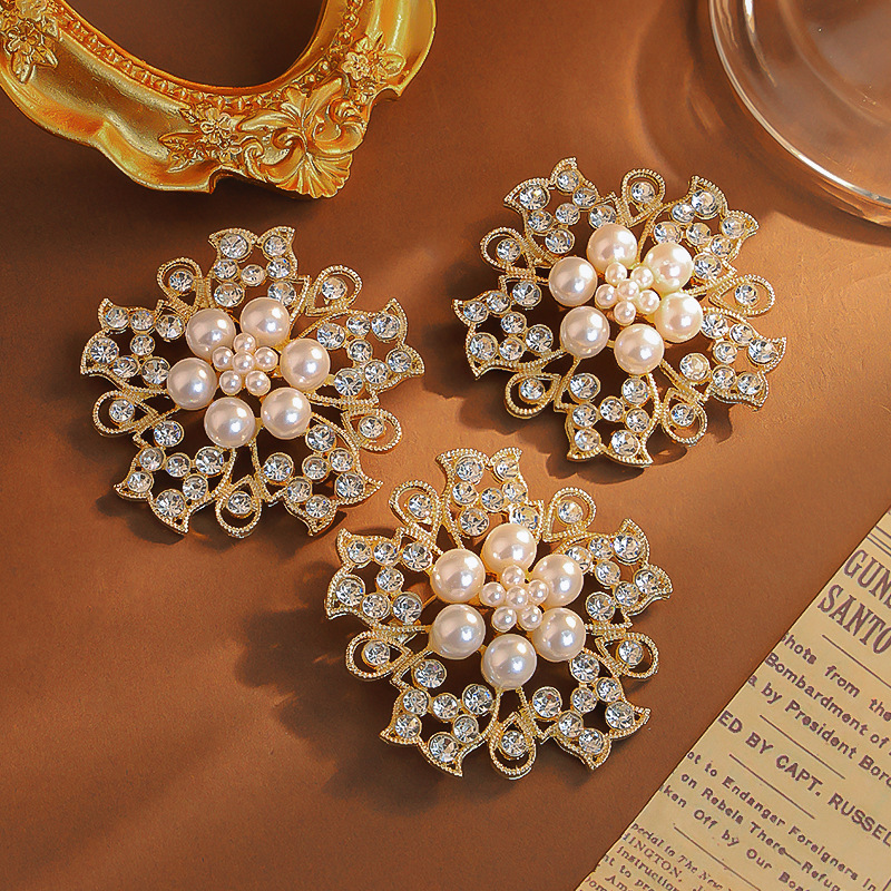ダイヤモンド付きパールビッグブローチ、女性用露出防止コサージュ、高級コート、ウインドブレーカー、スーツアクセサリー、クロスボーダー卸売