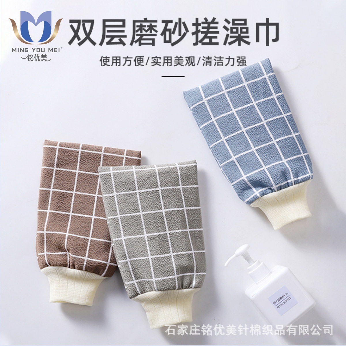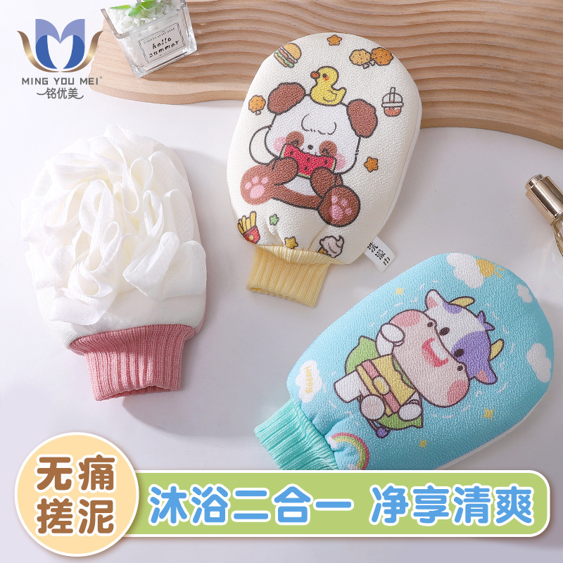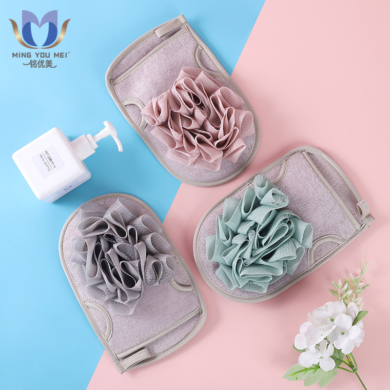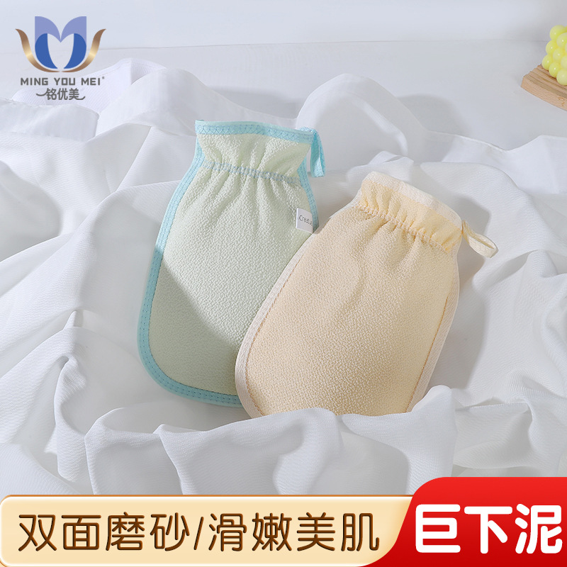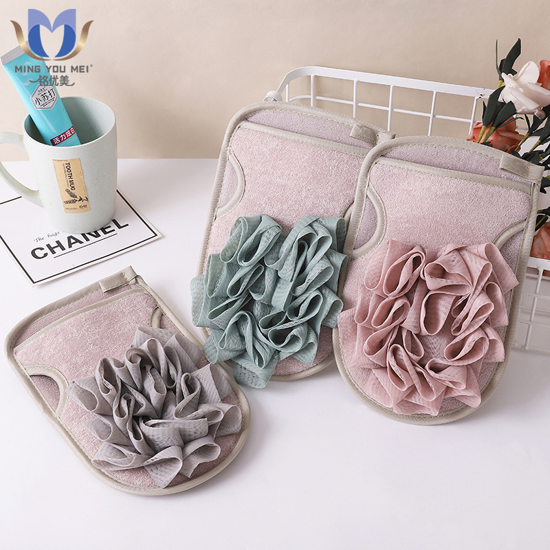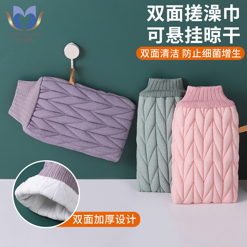 両面使用可能な指なし二重構造の女性用バスタオル、細かい砂で汚れや泥を落とす、ディープクレンジング効果のある入浴用手袋