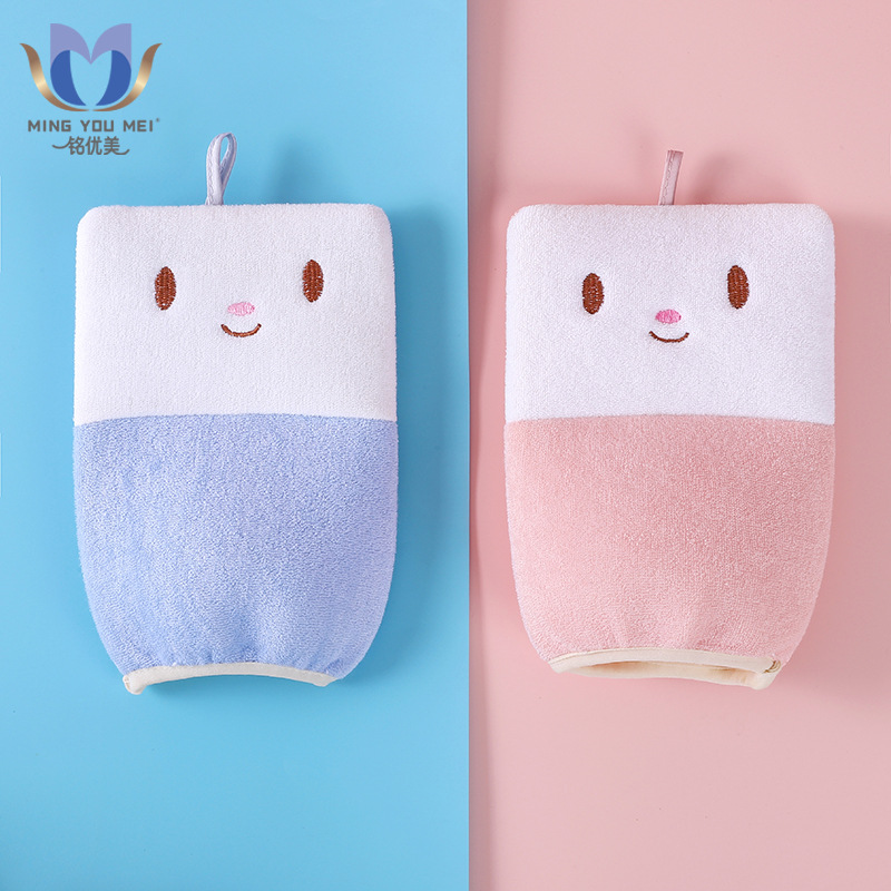 漫画の入浴手袋の子供の風呂タオルの細い砂は痛みがなくて、泥をこすります。