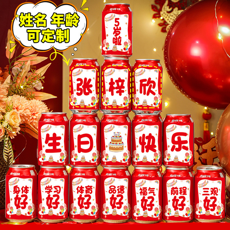 ハッピーファーストバースデーコーラステッカー子供、男の子、女の子向けにカスタマイズされたWangzaiミルクドリンクアレンジメント装飾