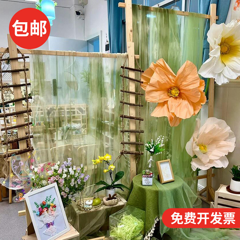 グリーンガーゼ中国風チュール幼稚園環境創造アボカドグリーンメッシュ結婚式の背景生地ソフトガーゼ猫