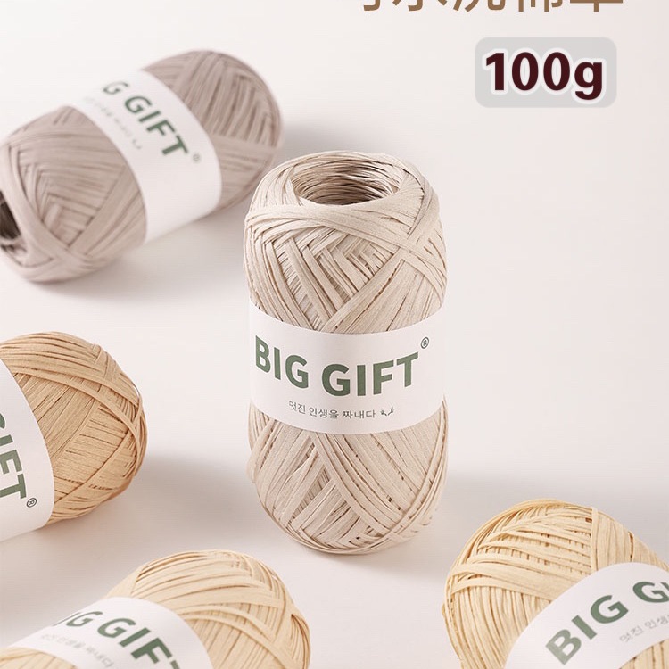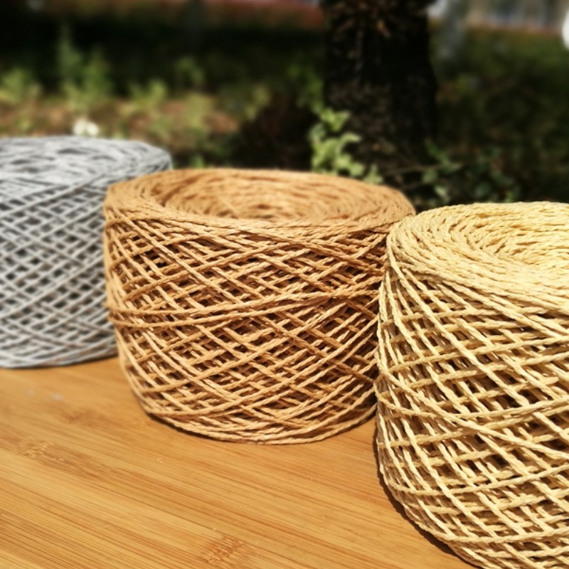 綿わら糸 ラフィア編み糸 手作りかぎ針編みバッグ 夏用帽子 麦わら帽子素材 かぎ針編み