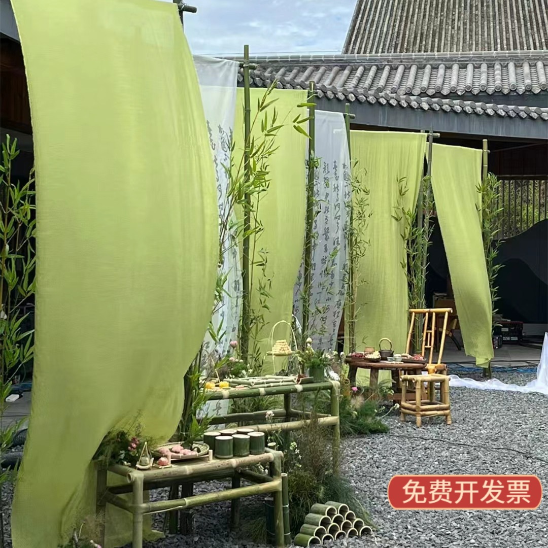 新しい中国風のシーンレイアウト中国風の古代スタイルの書道ガーゼグリーンシフォンガーゼウェディングカーテン結婚式の背景カーテン