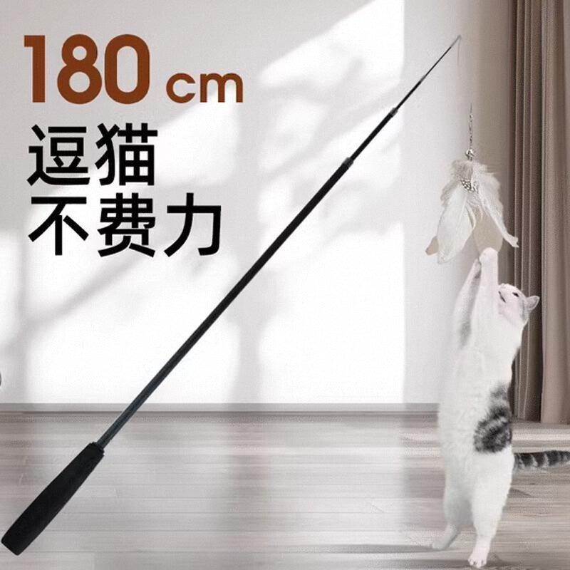 猫のおもちゃ、猫の面白いスティック、ロングポール、格納式1.8超ロングフェザー交換ヘッド、噛みつきにくい猫と子猫用品