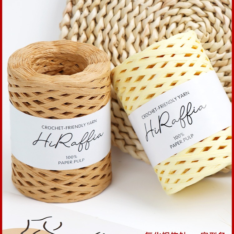 中厚ラフィアと紙素材の夏用編み麦わら帽子糸、かぎ針編み麦わら帽子、かぎ針編みバッグ用ラフィア糸