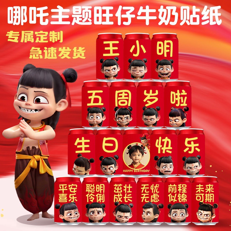 コーラステッカーカスタマイズされた誕生日 1 歳の Wangzai 缶飲料ステッカーレイアウトシーン装飾赤ちゃん男の子と女の子