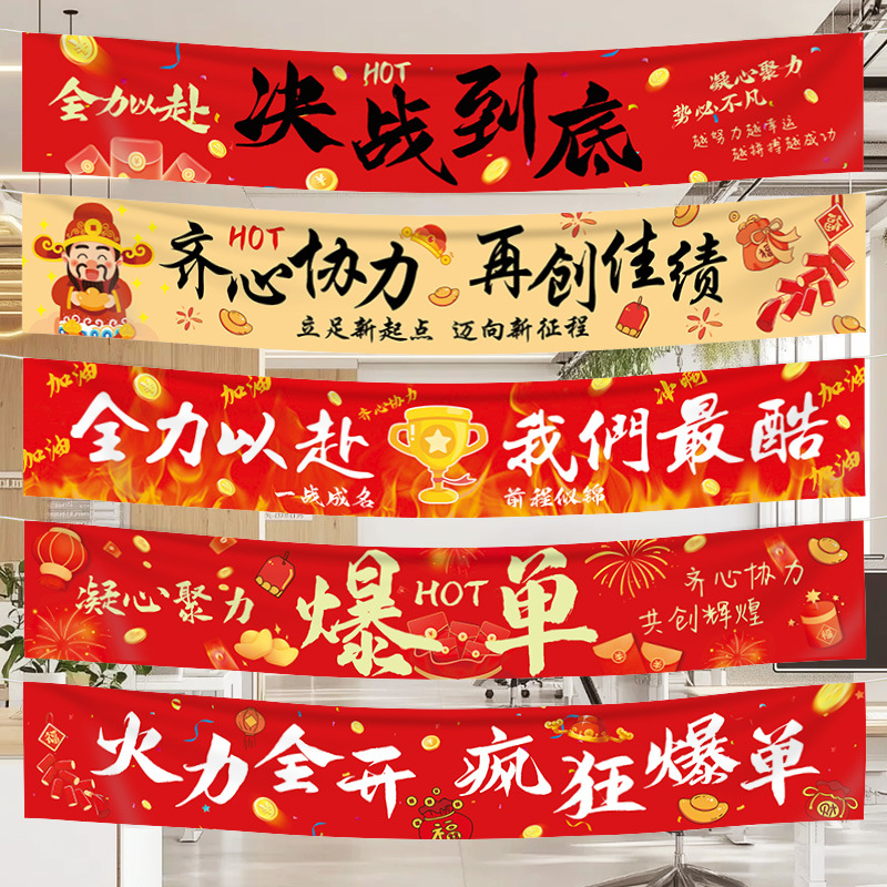 電子商取引雰囲気装飾会社オフィスシーン装飾インセンティブスローガンバナー生放送室爆発注文吊り布