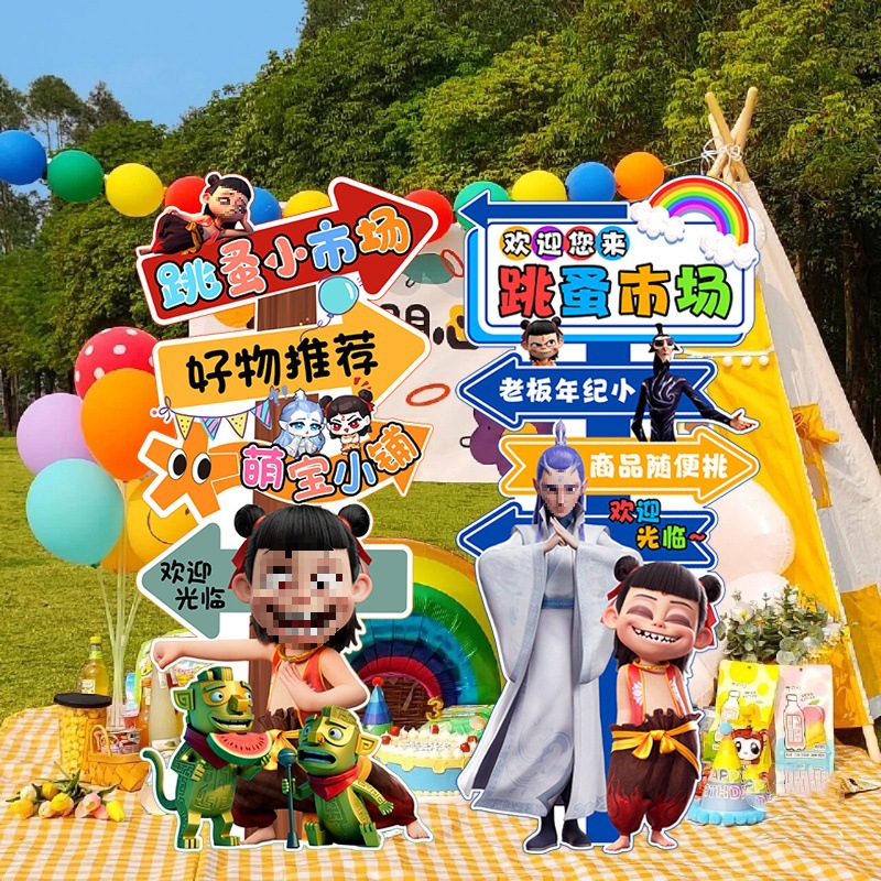 子供の日のネザテーマの愛のチャリティーセール装飾レイアウトフリーマーケットの屋台レイアウト写真チェックインスタンドディスプレイボード
