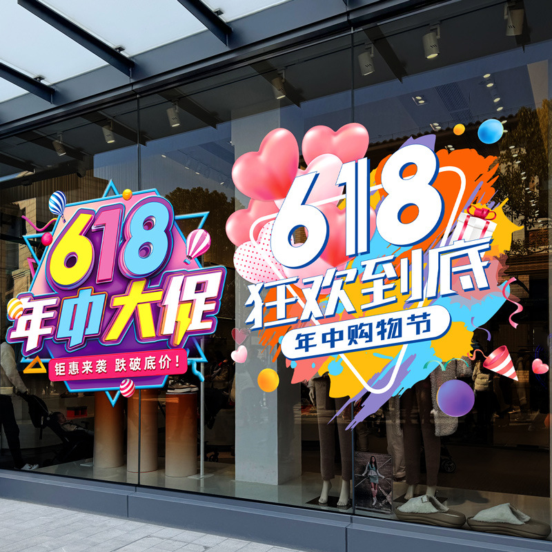 618 イベントポスター装飾ガラスドアステッカー静電ウィンドウステッカーショップ雰囲気シーンレイアウトオフィス