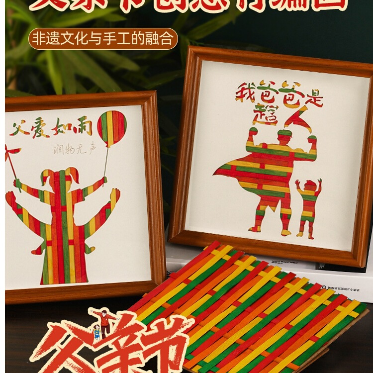 父の日の手作り竹絵フォトフレーム、お父さんへのクリエイティブギフト、幼稚園コミュニティチームビルディング活動のウォームアップ