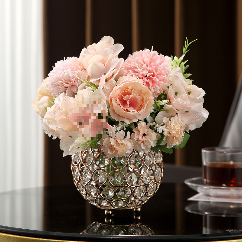 クリスタルガラスの小さな花瓶、電気キャビネット、コーヒーテーブル、リビングルームのダイニングテーブル、フラワーアレンジメント、フラワーアート装飾品、軽くて豪華なシルクフラワー