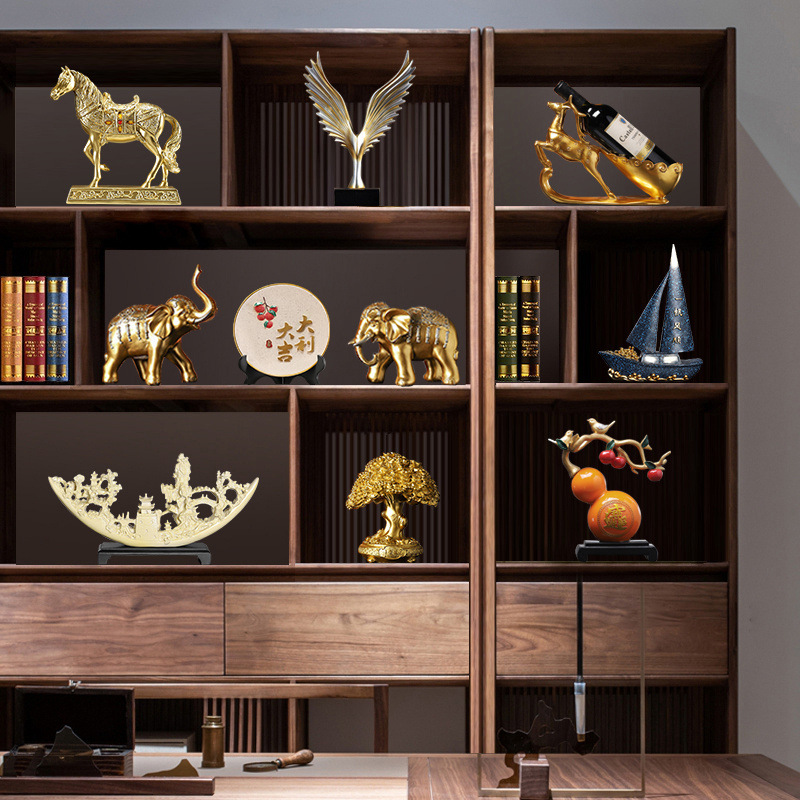 新しい中国風のボスオフィスの装飾品、軽くて豪華な雰囲気の本棚の装飾品、キャビネットの工芸品