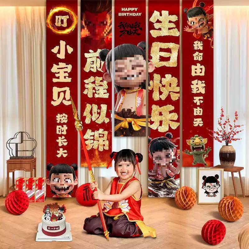 ネザテーマ誕生日バナー赤ちゃん1歳男の子誕生日雰囲気装飾吊り布背景壁シーンレイアウト猫