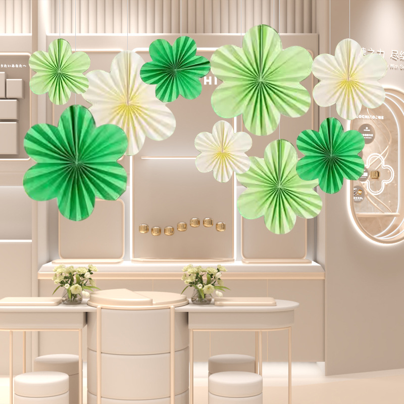 緑の花の紙扇子装飾誕生日パーティーレイアウト春の雰囲気幼稚園店舗空中ペンダントペンダント猫