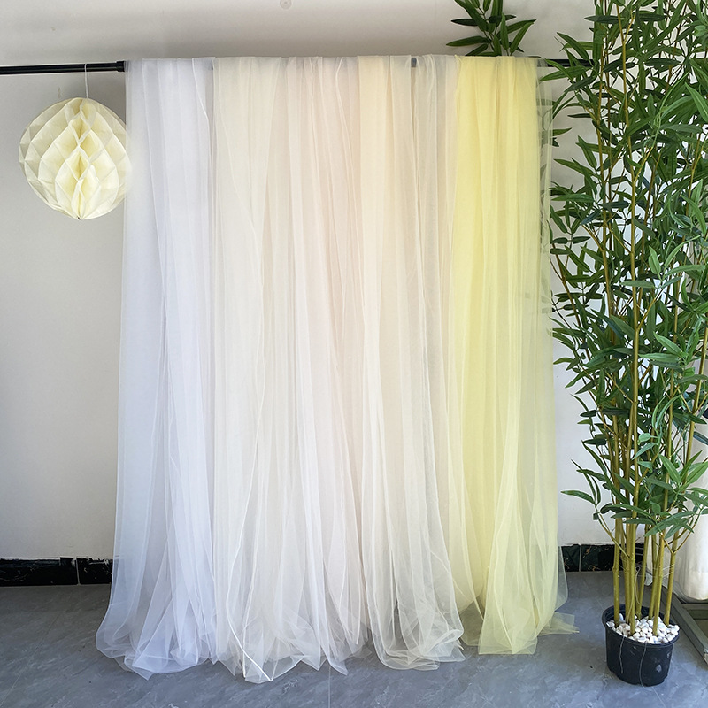 オフホワイトシャンパンライトイエローソフトガーゼウェディングウェルカム背景滝ガーゼ装飾イベントレイアウトメッシュ猫