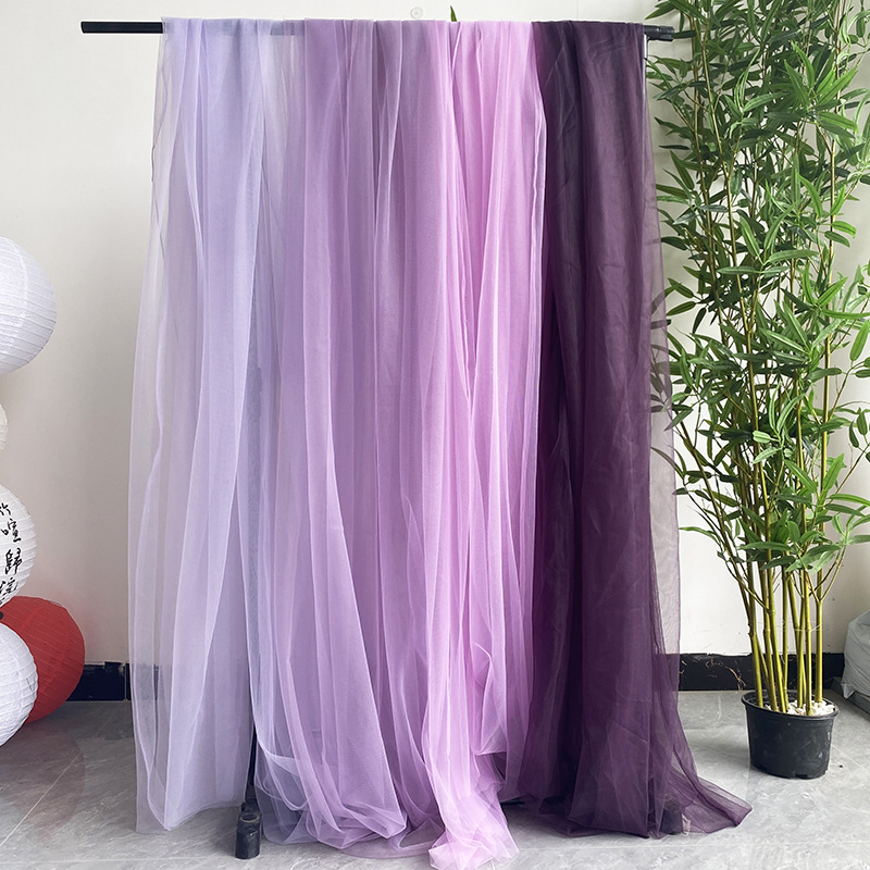 ピンク、紫、薄黄色の柔らかいガーゼカーテン結婚式のウェルカム背景滝ガーゼ装飾イベントレイアウトメッシュシルクフラワー