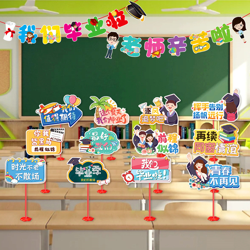 卒業シーズンのテーブルカード装飾、卒業教室黒板、卒業式紙扇子、フラッグデコレーション
