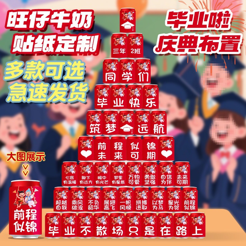 卒業式のお祝い王才ミルクステッカーカスタマイズされた幼稚園小学校教室シーンレイアウトドリンク装飾