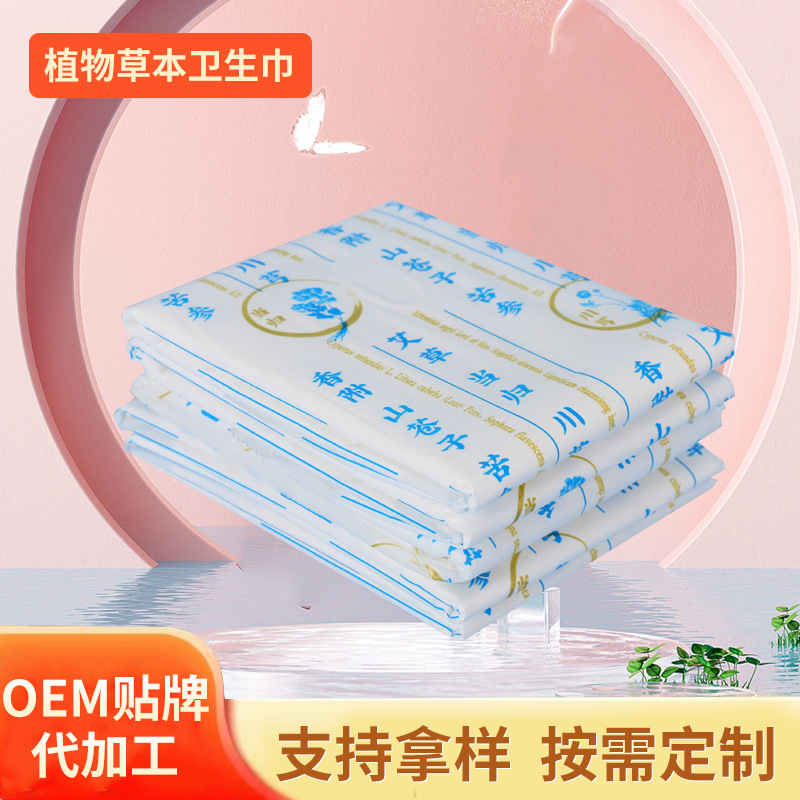 毎日使用するためのカスタマイズされた夏の植物ハーブ生理用ナプキン、薄くて透明なメンテナンス新疆長繊維綿生理用ナプキン