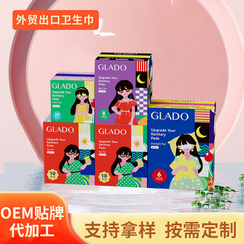 国境を越えた新しい外国貿易輸出生理用ナプキン GLADO おばさんナプキンガスケット超薄型生理用ナプキンガスケット全箱卸売