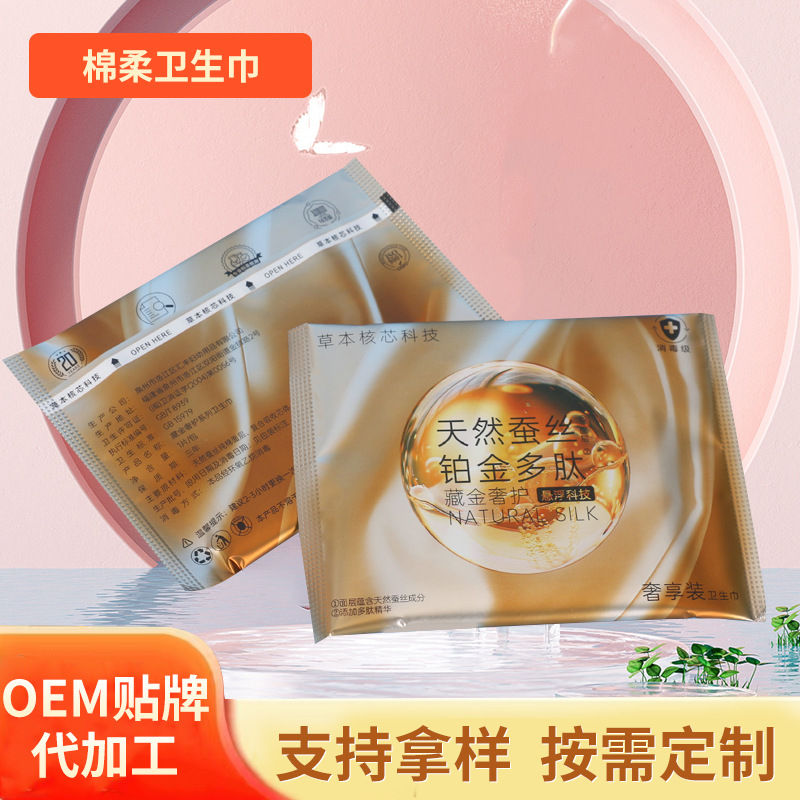 綿ソフト生理用ナプキン、シルク純綿層複合吸収コア生理用ナプキン、ゴールド高級ケアナプキン