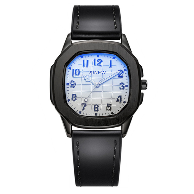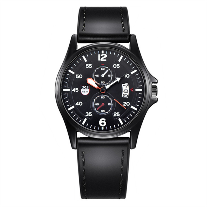 メンズ XINEW ブランド腕時計学生ファッションカジュアルレザーストラップシンプルなカレンダークォーツ時計ドロップシッピング