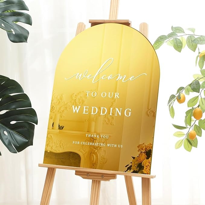 国境を越えて人気のある金色のアクリル結婚式の迎賓マーク花園芝生の屋外室内には迎賓カードが適用されている