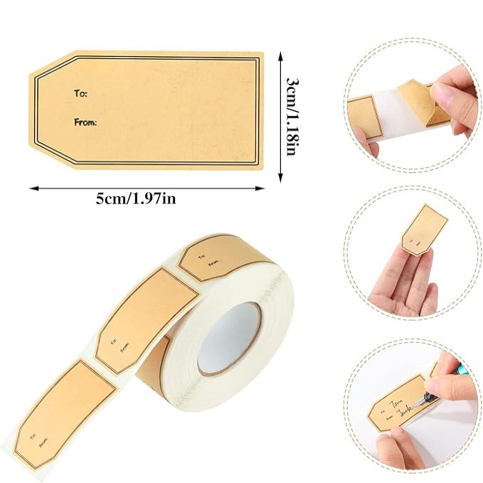 国境を越えた売れ筋の茶色の牛革ラベル粘着ステッカーホリデーギフト包装装飾書き込み可能な署名ラベルステッカー
