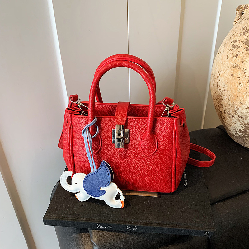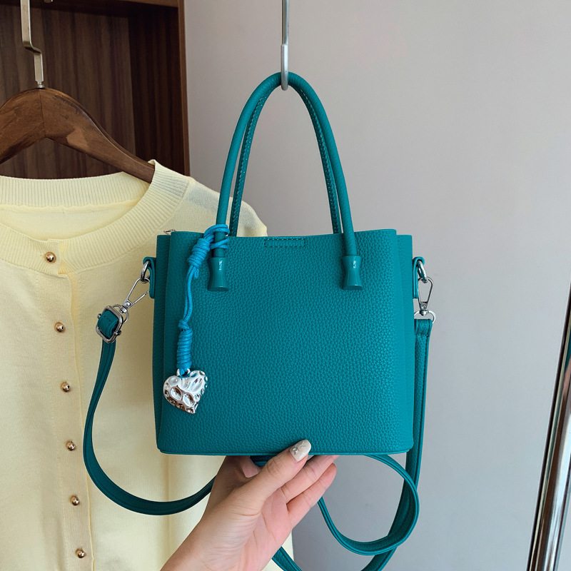 韓国系高級感シンプル小衆ハンドバッグ女性2025夏の新型レイシ紋斜め掛けバケツバッグ