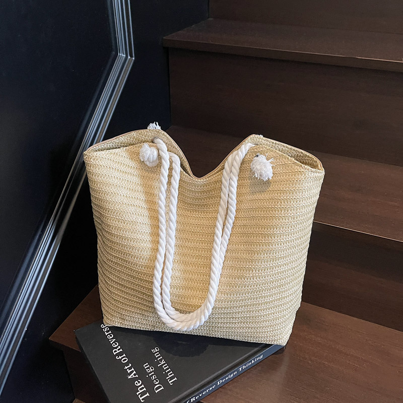 夏の大容量草編みバッグ2025流行編みトートバッグ海辺休暇旅行日常通勤