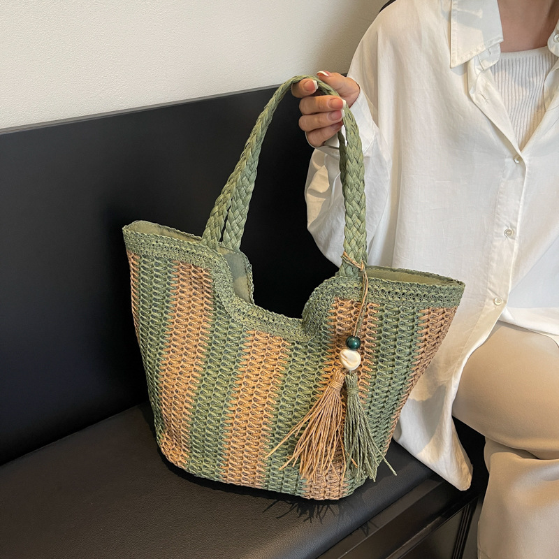 カジュアルなシングル肩編みバッグ女性の新型2025シンプルな夏の海辺のビーチ大容量草編みバッグ
