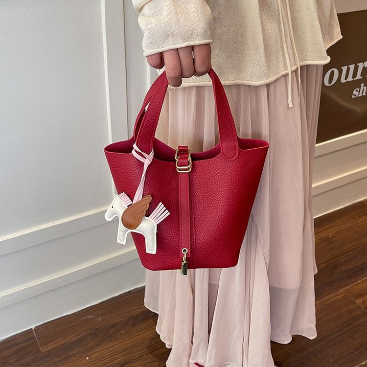 クロスボーダー高級感レイシ柄バケツバッグ女性2025新型手提げ野菜かごバッグファッションシングルショルダーバッグ