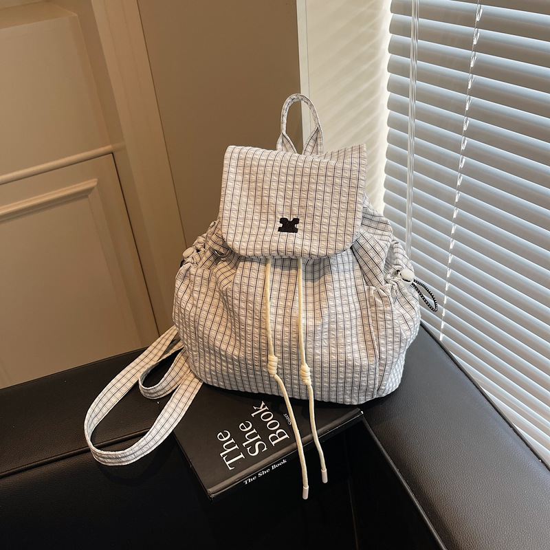 チェック柄キャンバス登山バッグ女性の 2025 新しいトレンディな韓国カレッジバックパックカジュアルバックパックショルダーバケットバッグ
