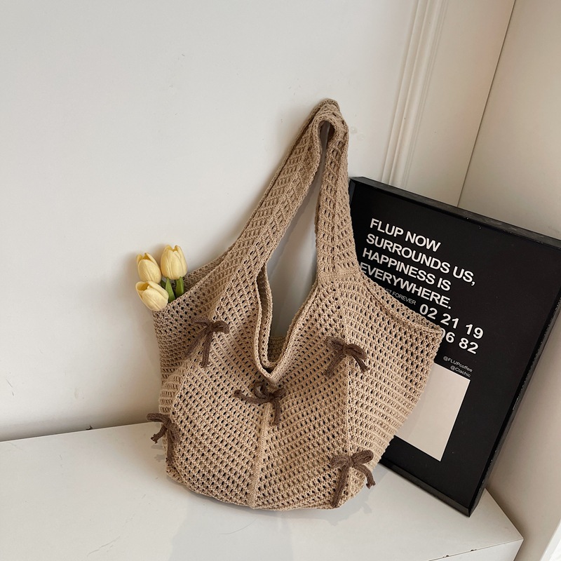 カジュアル大容量ニットバッグ女性のための 2025 新しい夏中空ニットウールバッグショルダートートバッグ