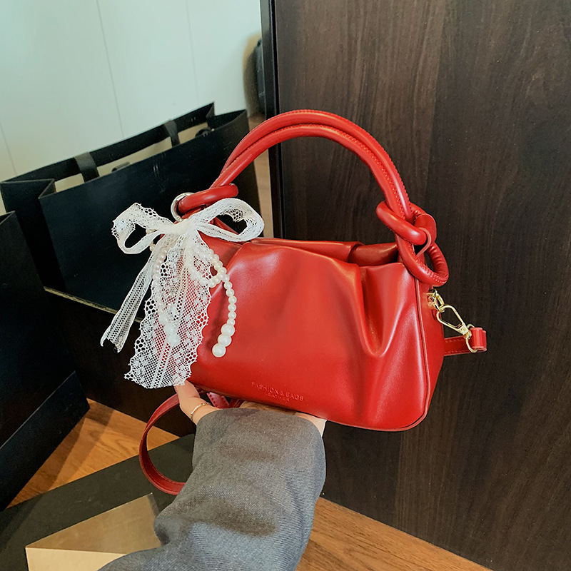 ハンドヘルドプリーツスモールスクエアバッグレディース韓国版イントレンディファッションショルダーバッグ2025夏新作シンプル脇バッグ