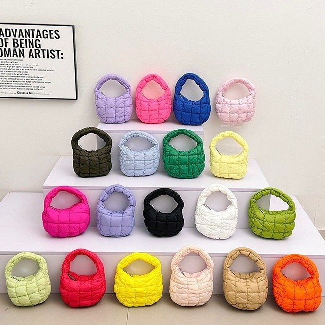 韓国のしわ雲包女小衆は格子泡包2023新型ダウン洋気ミニハンドバッグを持っている