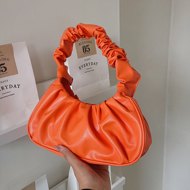 韓国の新型ファッションハンドバッグの純色のしわの雲のわきの下で甘い肩掛けの街頭のファッションの女性のカバンを包みます。